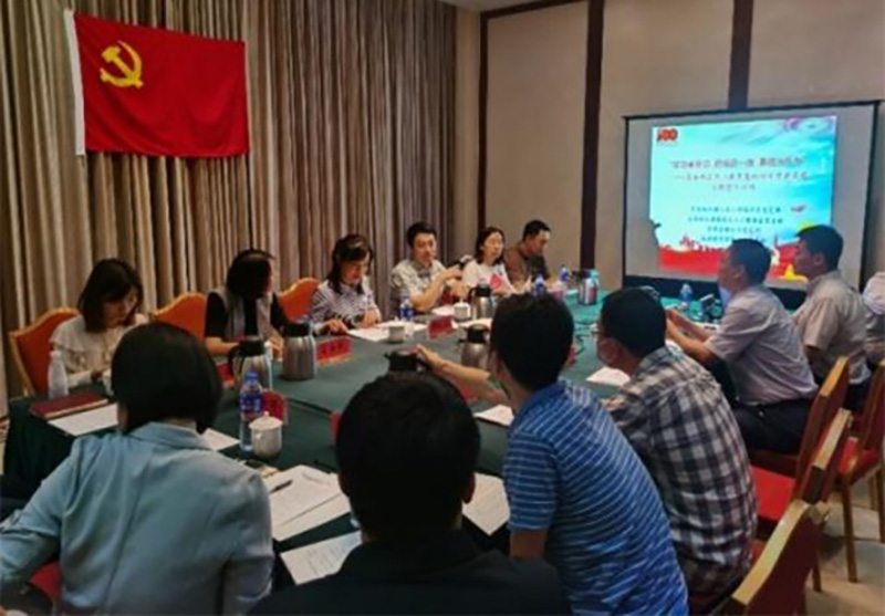 參觀后,4 個黨支部齊聚會議室,由濱海新區(qū)區(qū)委組織部高層次人才服務(wù)室黨支部書記劉建輝主持召開了座談會。宏亞公司黨支部書記岳琳領(lǐng)學了習近平總書記關(guān)于加強職業(yè)教育的重要指示批示精神,介紹了全國先進地區(qū)職業(yè)教育考察情況及項目進展情況。濱建投項管公司黨支部書記楊程交流了濱海新區(qū)黃港生態(tài)區(qū)職業(yè)教育產(chǎn)業(yè)園入園院校進展情況,劉建輝介紹了濱海新區(qū)職業(yè)教育基地建設(shè)展望。在交流研討中,宏亞公司咨詢?nèi)坎块L高淑玲回答了大家比較關(guān)心的入園院校數(shù)量、政府政策支撐、資金平衡方式等方面的情況。
