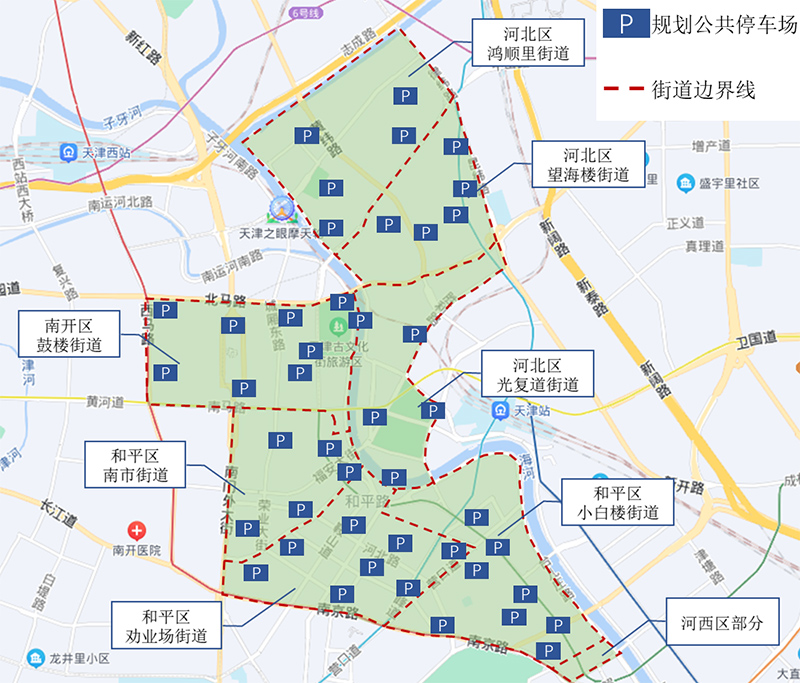 天津市中心城區(qū)核心區(qū)綠色交通改善工程及規(guī)劃停車場點位圖