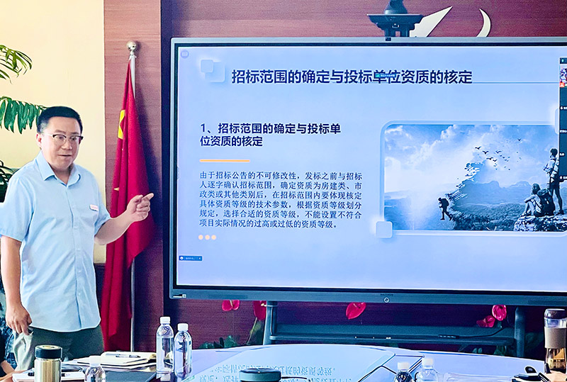 高睿講師做了題為《招標文件編制要點》的講授,聚焦學員們的培訓需求,針對否決性條款的設定、投標報價的風險和評標標準的設置等問題,利用招標文件中常見的實例,對招標文件編制要點做了細致解構(gòu),同時從業(yè)主、招標代理機構(gòu)和投標方三個不同角度出發(fā),介紹招標文件編制規(guī)范,分析了具體實操中的技術(shù)要點以及產(chǎn)生廢標風險的規(guī)避。