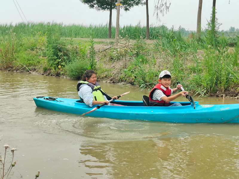 濕地皮劃艇項(xiàng)目將上午的活動(dòng)推向高潮。大家躍上皮劃艇,在粼粼波光中揮槳前行,或你追我趕,上演一場(chǎng)酣暢淋漓的水上競(jìng)速;或悠然自得,沉醉于濕地的如畫風(fēng)光。水面上歡笑聲與加油聲此起彼伏,奏響了活力四溢的夏日樂章。