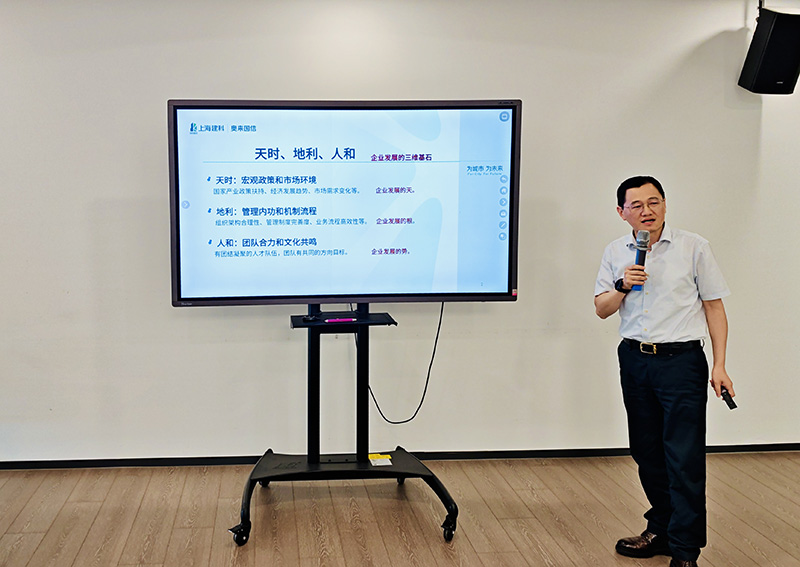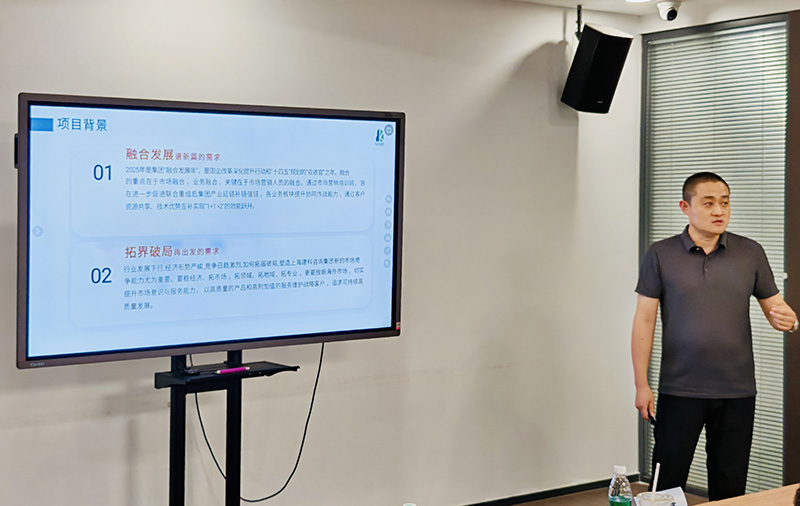 公司戰(zhàn)略市場部經(jīng)理于浩鵬結(jié)合參加集團“融合發(fā)展、拓界破局”營銷培訓班心得體會進行了交流分享。
