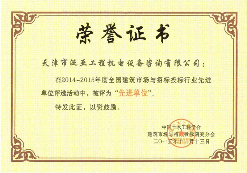 2014-2015年度建筑市場與招投標行業(yè)先進單位