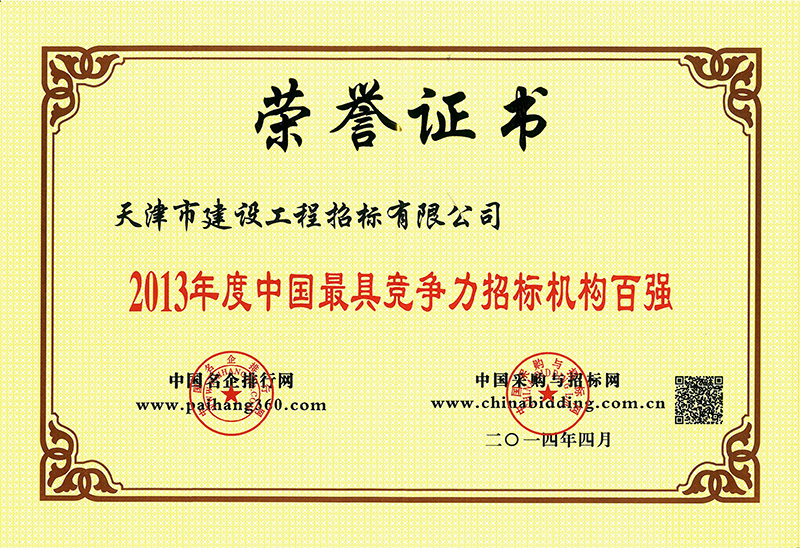 2013年度中國最具競爭力招標(biāo)機(jī)構(gòu)百強(qiáng)