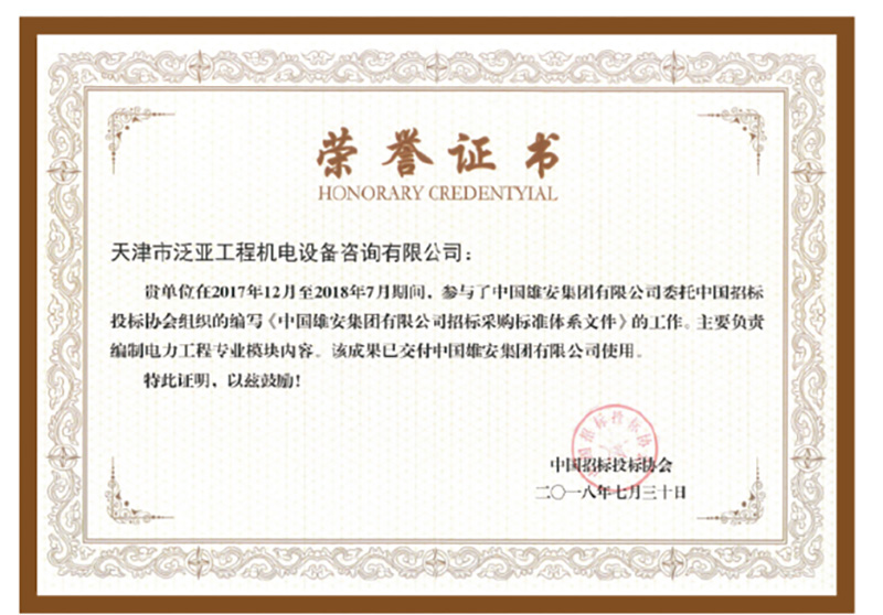 泛亞公司參與編制了雄安集團(tuán)《中國雄安集團(tuán)招標(biāo)采購標(biāo)準(zhǔn)體系文件》,獨(dú)立完成了電力工程專業(yè)模塊的編制工作,為雄安新區(qū)的發(fā)展貢獻(xiàn)泛亞智慧,在雄安新區(qū)展現(xiàn)天津名片,得到各方好評(píng)。