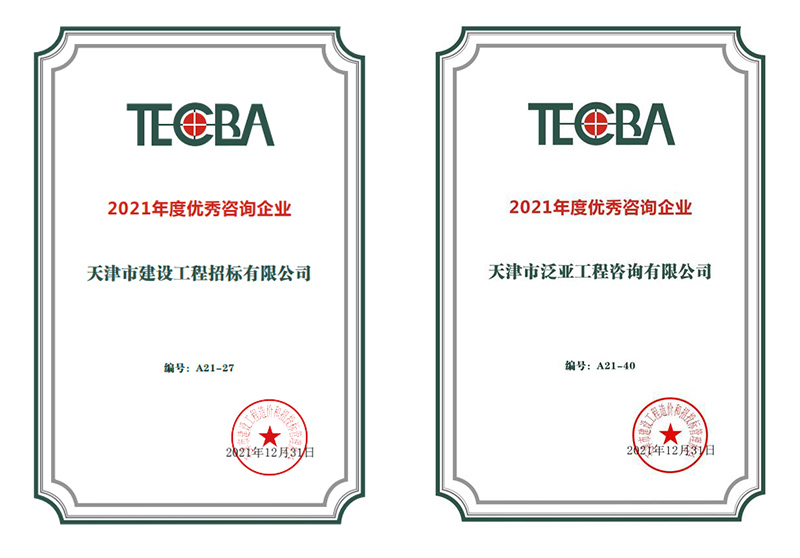 近日,從天咨公司下屬公司傳來喜報(bào),在天津市建設(shè)工程造價(jià)和招投標(biāo)管理協(xié)會(huì)公布的2021年度優(yōu)秀咨詢企業(yè)獎(jiǎng)項(xiàng)的評選中,天咨下屬泛亞公司和招標(biāo)公司雙雙榮獲“2021年度優(yōu)秀咨詢企業(yè)”榮譽(yù)稱號(hào)。